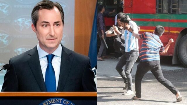 এই প্রশ্নের জবাবে মার্কিন পররাষ্ট্র দপ্তরের মুখপাত্র ম্যাথিউ মিলার বলেন, বাংলাদেশের রাজধানী ঢাকাসহ বিভিন্ন জায়গায় ব্যাপকভাবে ছড়িয়ে পড়া শিক্ষার্থীদের বিক্ষোভের বিষয়ে যুক্তরাষ্ট্র অবগত রয়েছে। হামলায় শত শত মানুষ আহত হয়েছেন ও দুজন নিহত হয়েছেন। আমরা এই বিষয়টি পর্যবেক্ষণ করছি। তিনি আরও বলেন, মতপ্রকাশের স্বাধীনতা এবং শান্তিপূর্ণ সমাবেশ যেকোনও বিকাশমান গণতন্ত্রের জন্য অপরিহার্য ভিত্তি হিসাবে কাজ করে। আমরা শান্তিপূর্ণ প্রতিবাদকারীদের বিরুদ্ধে যেকোনও ধরনের সহিংসতার নিন্দা করি।