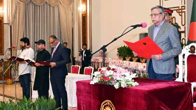 আজ সন্ধ্যায় ড. মুহাম্মদ ইউনূসের নেতৃত্বাধীন অন্তর্বর্তী সরকারে নতুন করে তিনজন উপদেষ্টা যুক্ত হয়েছেন। তারা হলেন- শিল্পগোষ্ঠী আকিজ-বশির গ্রুপের ব্যবস্থাপনা পরিচালক সেখ বশির উদ্দিন, চলচ্চিত্র পরিচালক মোস্তফা সরয়ার ফারুকী ও প্রধান উপদেষ্টার বিশেষ সহকারী মাহফুজ আলম।